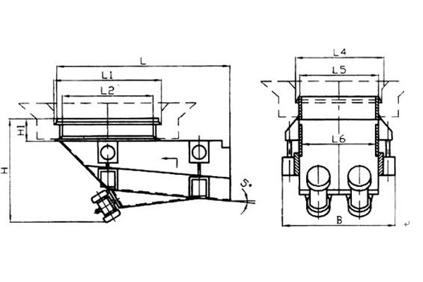 慣性振動給煤機由機架、底板(給煤槽)、傳動平臺、漏斗、閘門、托輥等組成。當電機開動后經彈性聯軸器、減速機、曲柄連桿機構拖動傾料5°的底板在輥上作直線往復運動,煤均勻地卸到其他設備上。